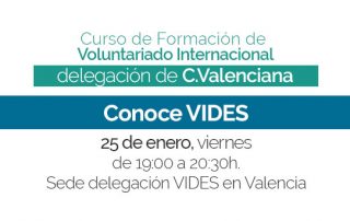 Comienza el curso de formación en la delegación de Valencia: Conoce VIDES. Tendrá lugar el 25 de enero de 19:00 a 20:30h. en la sede de VIDES (C/San Juan Bosco 39, Valencia). Os esperamos!